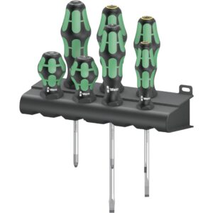 Wera 300/7 Mix 2 er et alsidigt skruetrækkersæt, der kombinerer lange og korte skruetrækkere til både almindelige og svært tilgængelige skruer. Sættet inkluderer både standard- og stubby-skruetrækkere, hvilket gør det ideelt til både generelle og præcisionsarbejder.